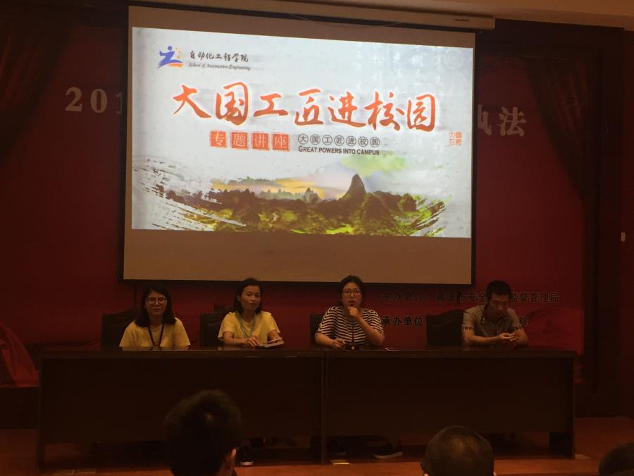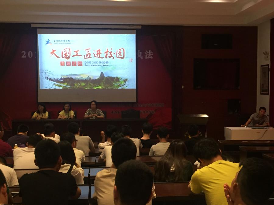 2017年5月11日,下午4点,在我校图书馆一楼报告厅,开展了“大国工匠进校园”的专题讲座,本次讲座有幸诚邀到三位2010届毕业的学长学姐,参加本次讲座的还有辅导员杨娴老师以及2015级的全体学生。