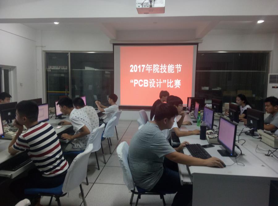 6月1日,2017年院技能比赛“PCB设计”项目在自动化实训中心EDA实训室举行。共有15位同学报名参加。该竞赛项目通过制作“多路波形发生器”来考核学生的电路图绘制和PCB设计能力,最终评选出了一等奖2名,二等奖3名,三等奖4名。