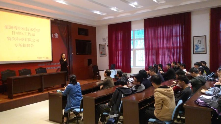 2017年11月20日,我系2017年首场专场招聘会在图书馆一楼召开,本次招聘会的主办方为自动化工程系和江苏特兴科技有限公司。我系电子、电信、电气自动化等专业的一百多名学生积极响应,参加了此次招聘会,取得了良好的效果。