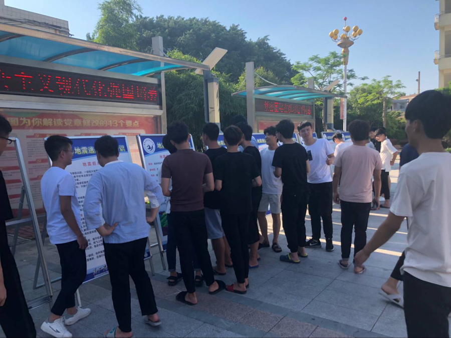 当日下午, 我系学生代表到达学院图书馆门口,参观减震减灾活动宣传栏。同学们在指导老师的带领下,不仅参观了宣传栏,还学到了许多防震减灾的知识,积极响应了此次宣传栏参观活动。