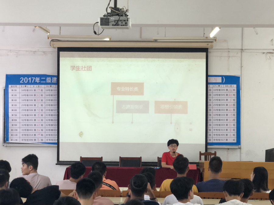 为让新生尽快融入大学生活,11日下午,在17#101杨娴辅导员用幽默风趣的方式为同学们讲述了校园内的各类学生组织。