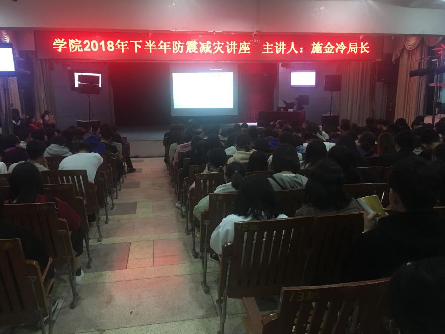 为进一步增强全院师生的防震减灾意识,让师生正确的了解地震、认识地震,掌握正确的地震避险和自救、互救的技能。湄洲湾职业技术学院于2018年12月25日晚17:00,在17号楼201由莆田市地震局局长施金冷进行防震减灾知识普及讲座。