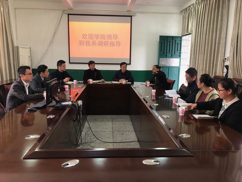 调研中,我系主任佘明辉、系党总支书记陈满红分别从基层组织、基础工作以及各类人员的基本能力建设情况,基层党支部“三会一课”执行情况,党员发展工作,师资队伍建设,专业和学科建设,课堂教学效果和教学方式改革,师资队伍建设和实验室建设及学生日常管理工作等方面进行了重点汇报。参会的两个支部书记和教师代表也分别结合各自的实际工作谈了自己的做法和想法。