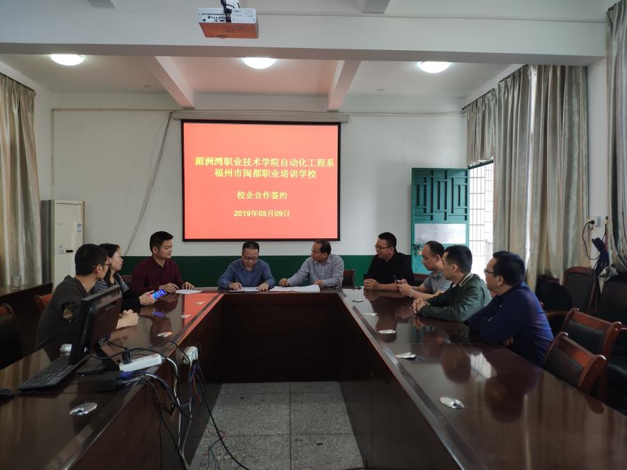 2019年5月9日,闽都职业培训学校詹校长携带相关人员于上午来我校新校区实训室参观。我系佘明辉主任全程陪同一行人参观,并讲解共建实训室的意见和建议。