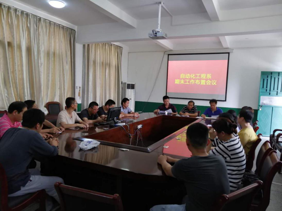 2019年6月4日,我系全体教职工在16#204召开期末教学工作布置会议。会议上,陈满红书记向全系传达市教育局第二季度学校安全稳定工作会暨扫黑除恶专项斗争推进会精神,布置开展新一轮“平安校园”创建活动工作;接着,陈辉煌副主任开始布置期末教学工作安排、毕业生返校相关工作安排、暑假教师培训相关安排等;最后佘明辉主任做进一步的补充和总结,要求教师期末教学常规和期末考试相关事宜,要求毕业生返校教师做到在岗在校,希望青年教师尽量在暑假期间多出去往电子信息和智能制造方向进行培训和学习。